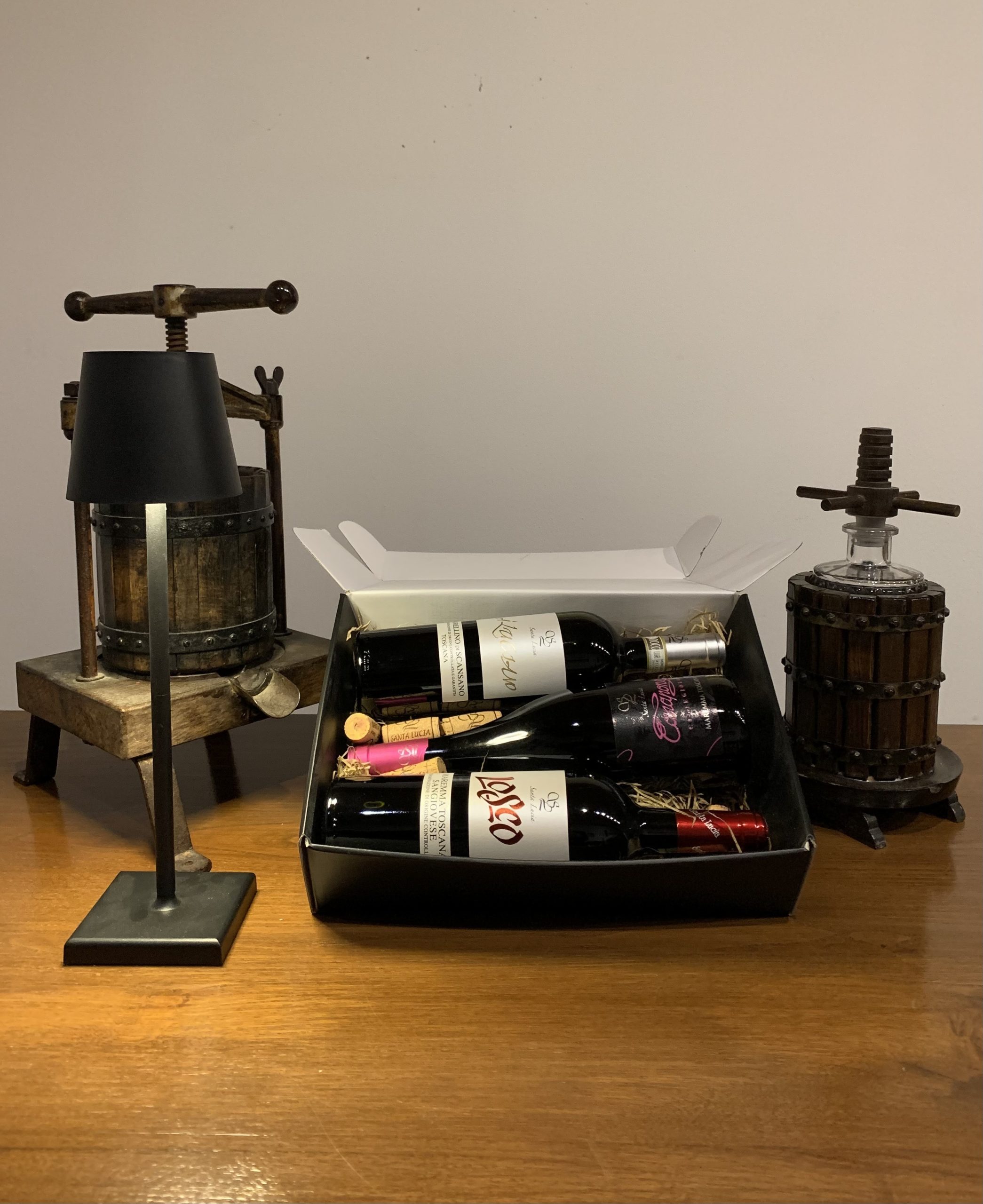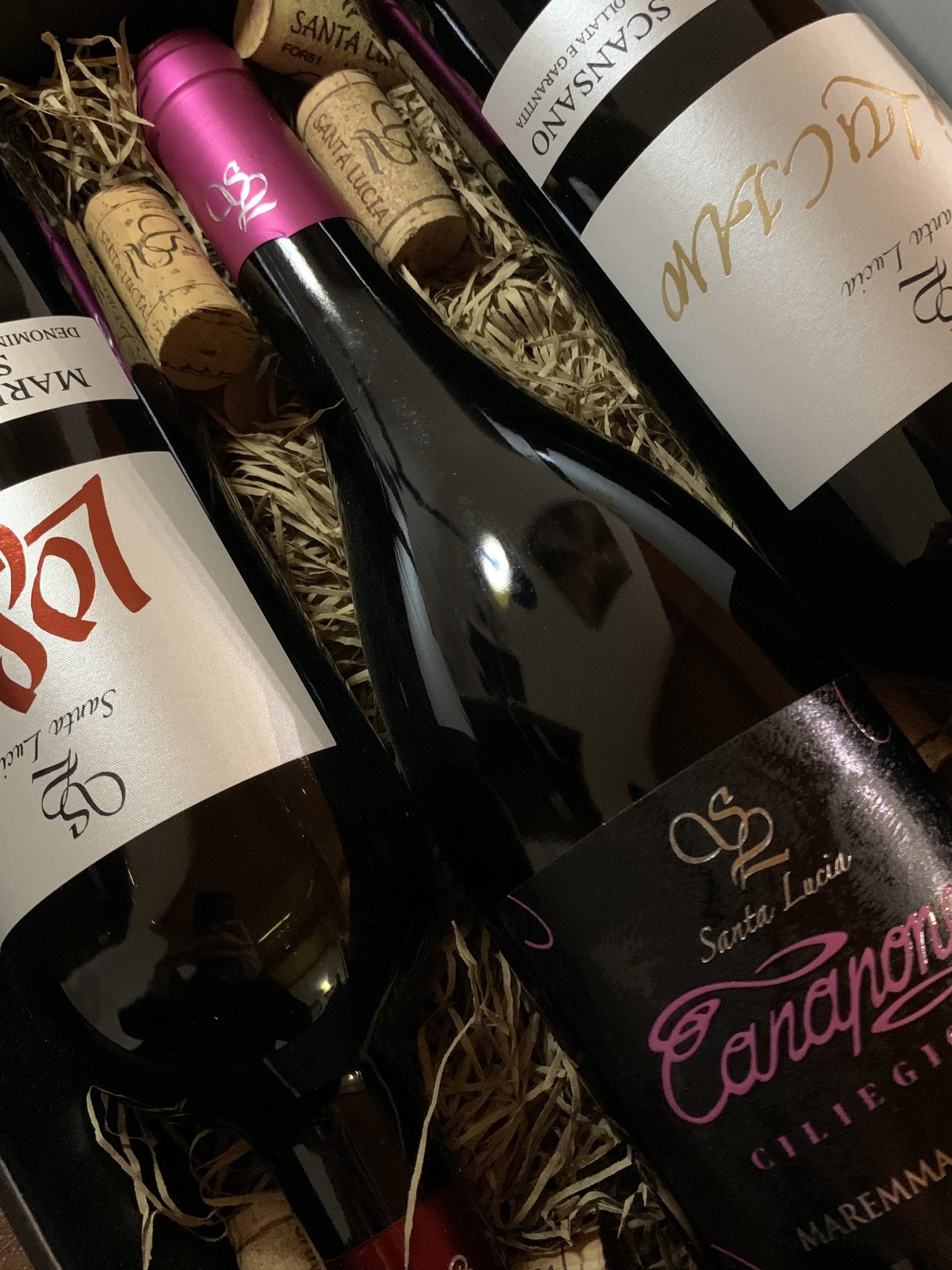 1 bt IGT Costa Toscana Sangiovese Losco, 1 bt DOCG Morellino di Scansano A’Luciano, 1 bt DOC Maremma Toscana Ciliegiolo Canapone.