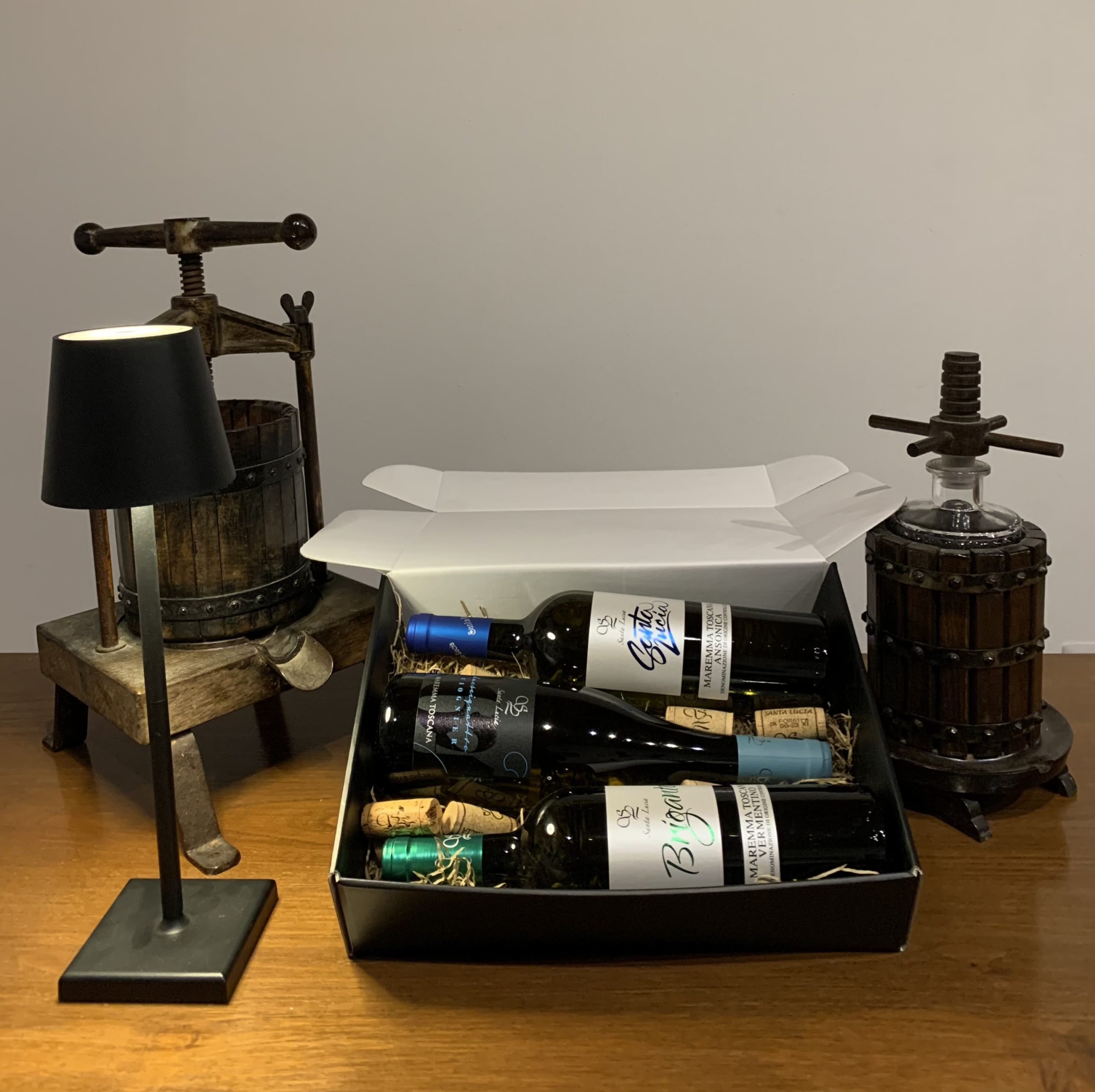 1 bt IGT Costa Toscana Vermentino Brigante, 1 bt IGT Costa Toscana Ansonica Santa Lucia, 1 bt DOC Maremma Toscana Viognier dueseiquattro.